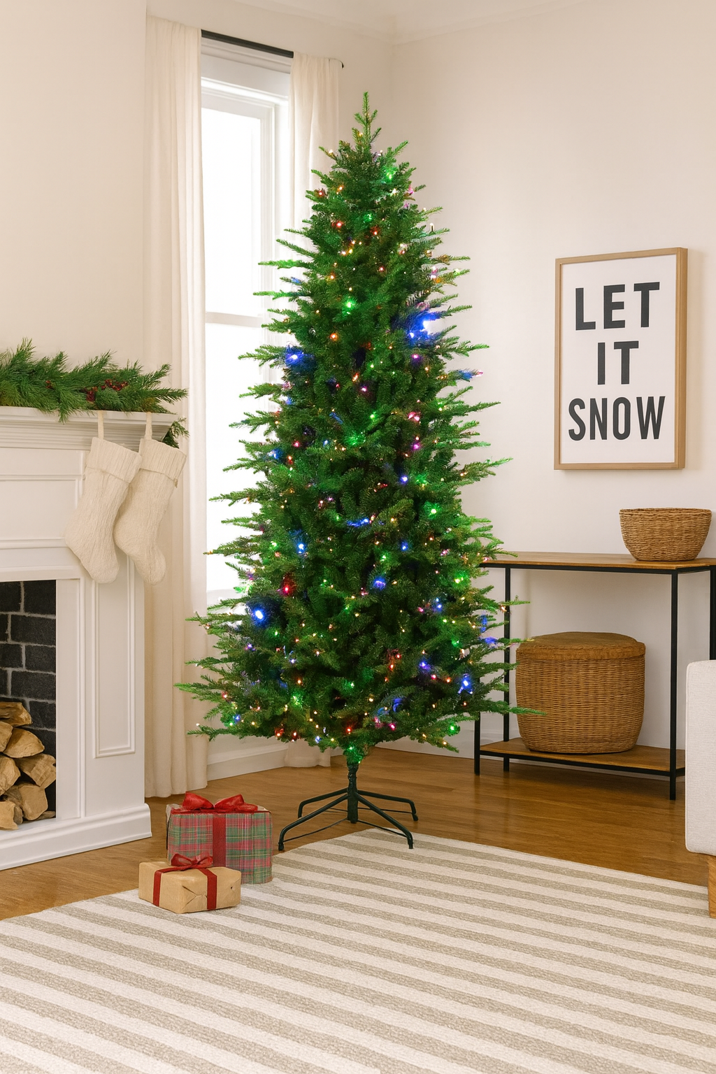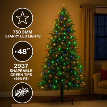 The Nordic Fir comes pre-lit with 750 starry 3MM LED lights, offering color-changing options (warm white & multi) and 16 dynamic lighting functions, all easily managed by remote control or the Aurio Smart APP. Built with Smart Power Pole Technology and Continuous-ON Technology, setup is quick and reliable — even if one bulb goes out, the rest stay shining bright.