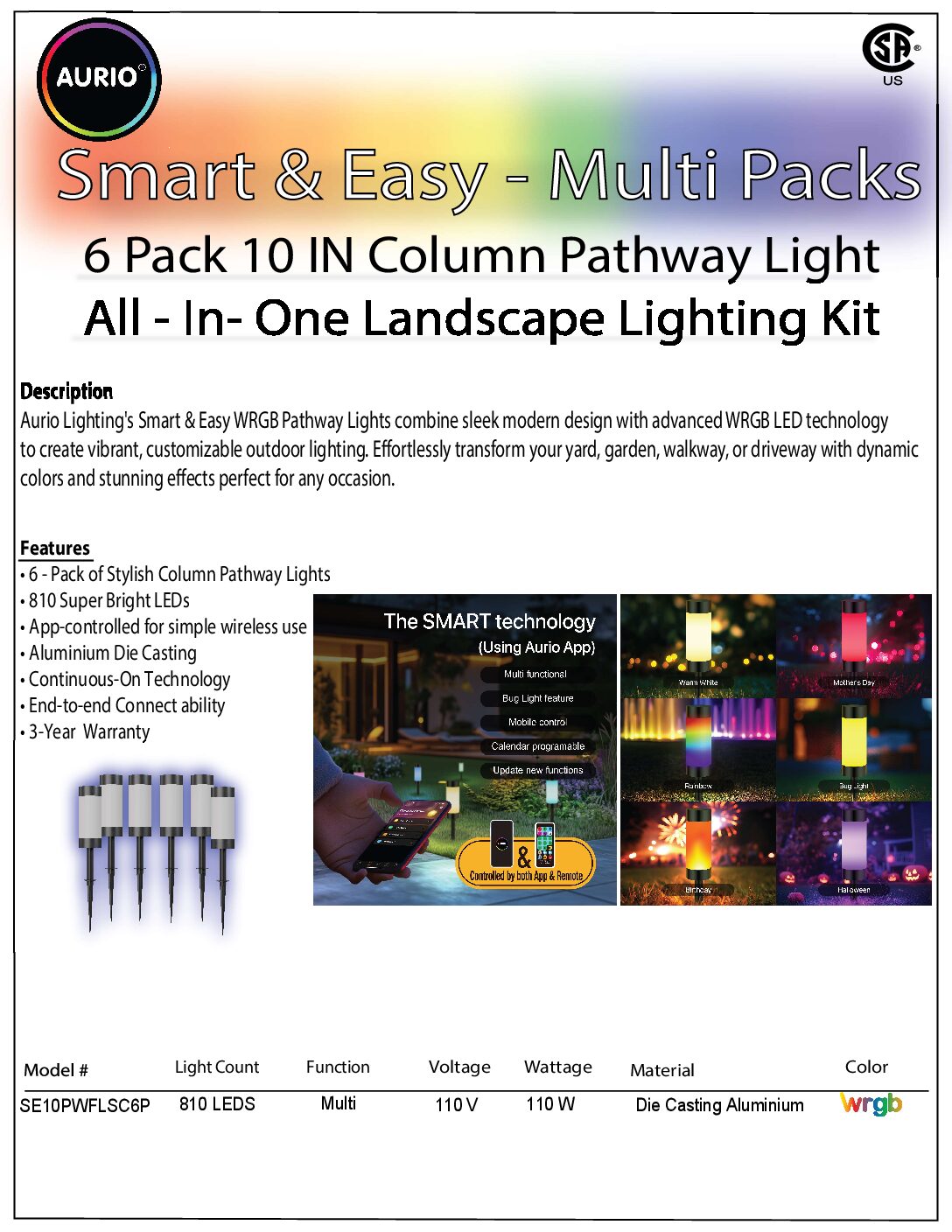 Aurio S&E 10 in column pathway light 4 pack kit provides good performance because of its sizeable luminous surface for our fantastic light show programming. In addition to the lights, the Multi-pack also includes an S&E speaker controller. After purchasing the Multi-pack, you can simply group multiple lights to achieve a more dynamic performance in the light show.