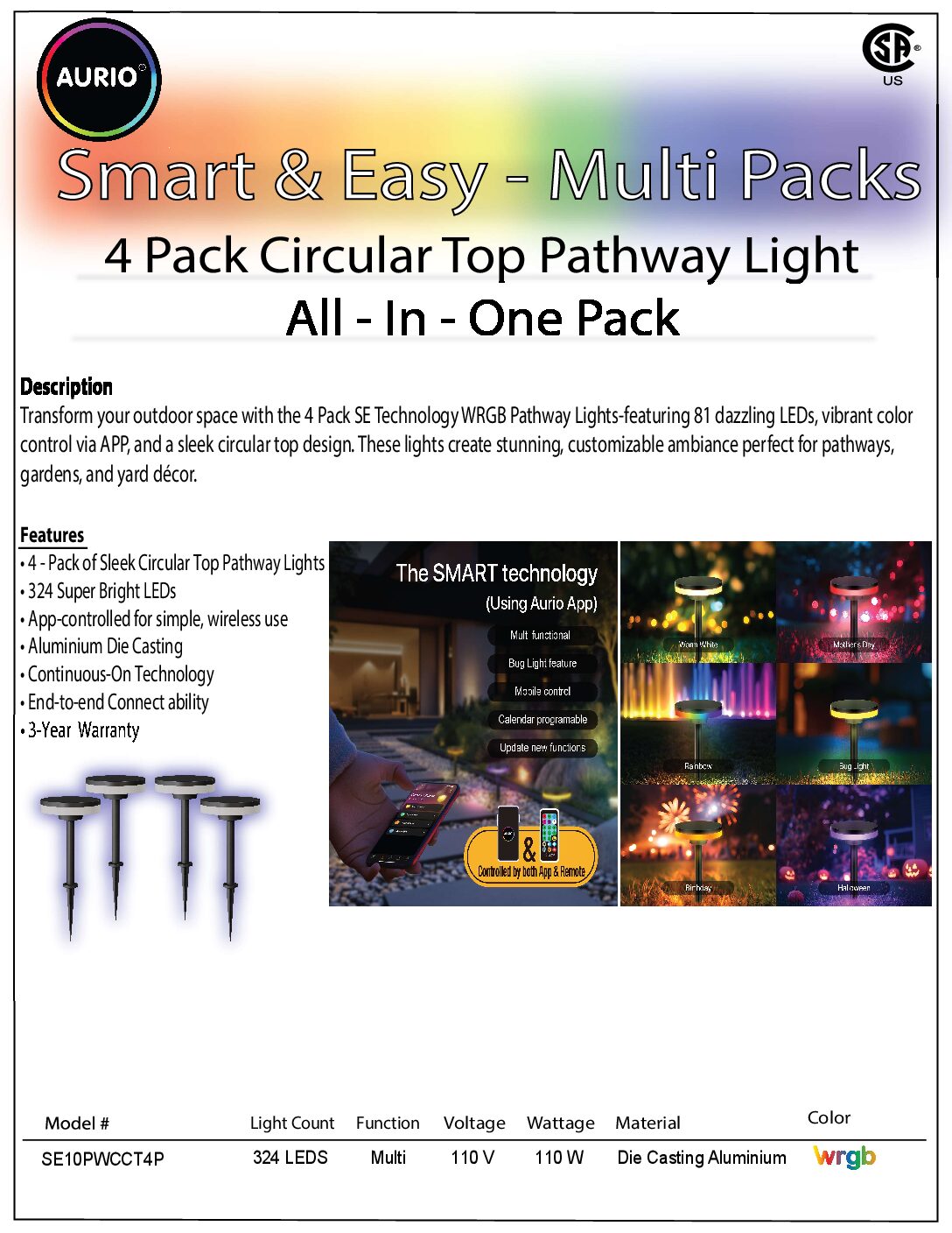 Aurio S&E Circular Top Pathway Light – 4 Pack Kit